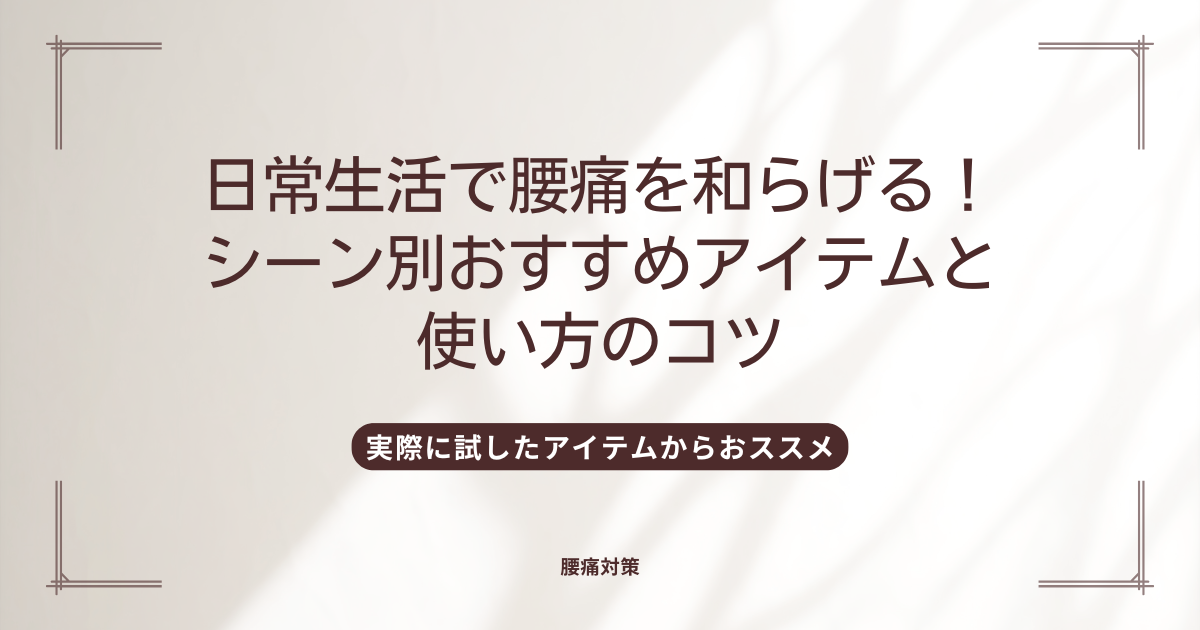 この記事では、そんな私が実際に使ってよかった腰痛対策アイテムを、シーン別にご紹介します。同じような悩みを抱える方のヒントになれば嬉しいです。