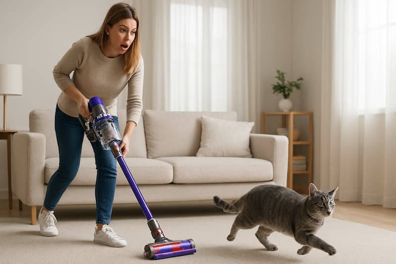 掃除機の音が苦手な猫も多いため、できるだけ負担を減らしながら使用する工夫が必要です。わがやでは、じゅにあが怖がらないように、掃除機を出しっぱなしにして「突然現れる恐怖」を軽減しています。さらに、ホースのあるトルネオの先にガムテープで固定し、少しでも騒音を遠ざけることで、慣れやすくしました。