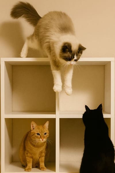 こうした「下の一段目」のような空間は、猫同士の関係がまだ安定していない時期には、ストレスの原因になることがあります。
