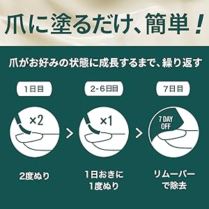 - エンビーの使い方は画像のように、2日に1回重ね塗りして7日目にオフをする、というものです。