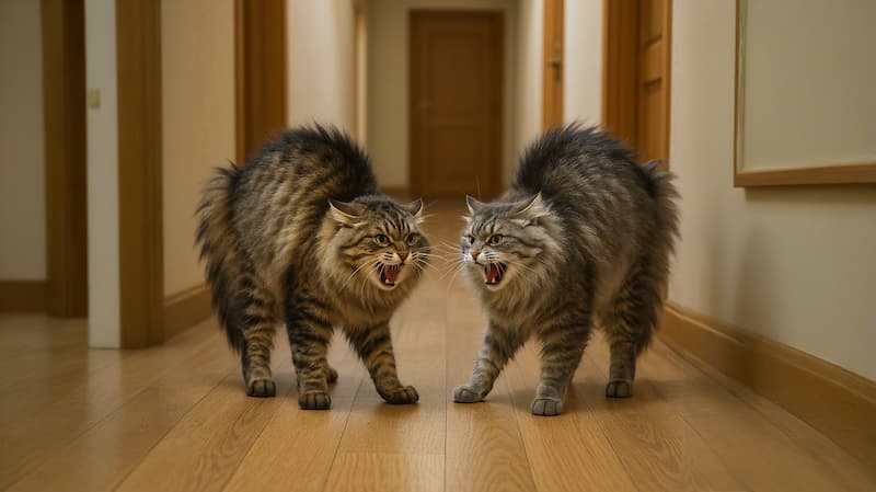 猫は自分のテリトリーをとても大切にします。特に新しい猫を迎えたばかりの頃は、先住猫が「自分の場所を奪われた」と感じて攻撃的になることがあります。