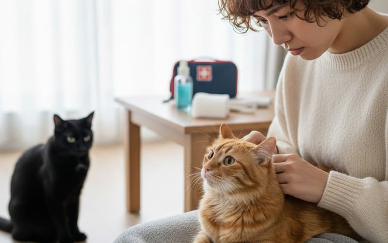 ケンカの後は、必ず猫の体をチェックしてください。特に噛み傷は深く、化膿しやすいので注意が必要です。