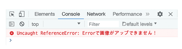 - 「コンソール」タブを見て、画像アップ時に赤文字のエラーが出ていないかチェックしてみましょう。