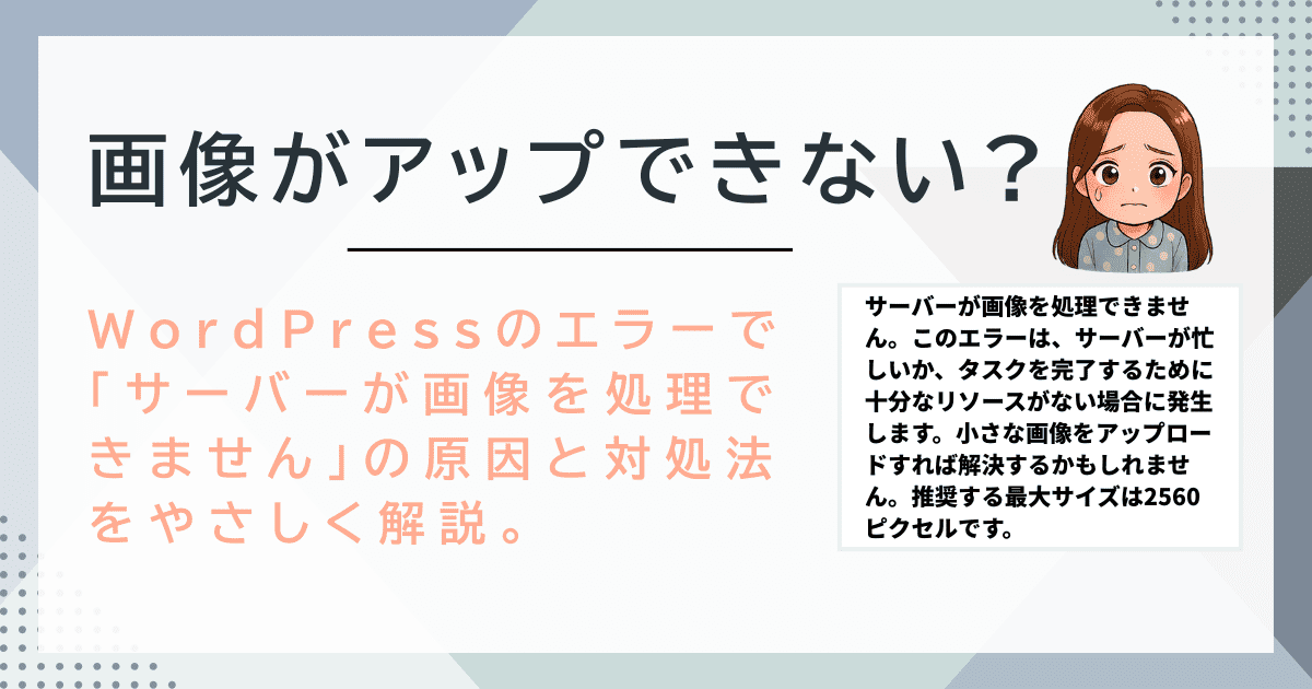 でも、そんな大事な画像のアップロード時に、「サーバーが画像を処理できません」とエラー表示が出たことはありませんか?